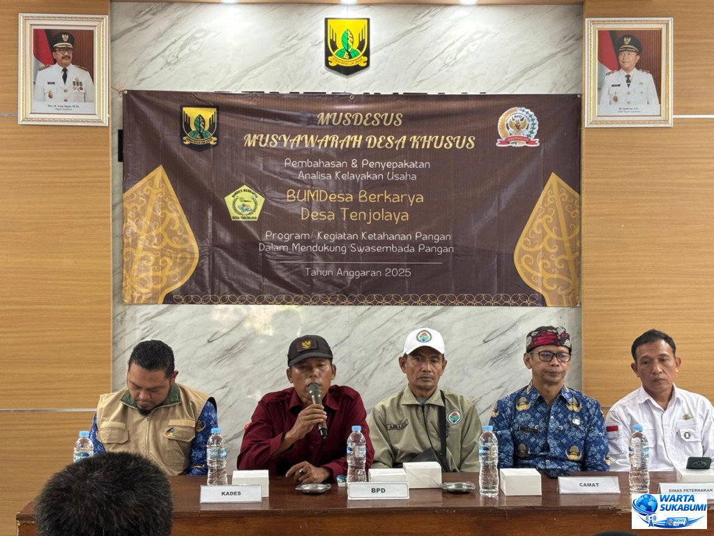 Tenjolaya, Cicurug — Rabu, 17 Desember 2025. Pemerintah Desa Tenjolaya, Kecamatan Cicurug, Kabupaten Sukabumi, melaksanakan Musyawarah Desa Khusus (Musdesus) dengan agenda pembahasan dan penyepakatan Analisa Kelayakan Usaha Desa. Kegiatan ini menjadi langkah strategis dalam memperkuat arah pengembangan Badan Usaha Milik Desa (BUMDes) Tenjolaya agar lebih produktif, berdaya saing, dan berkontribusi nyata terhadap peningkatan Pendapatan Asli Desa (PAD).